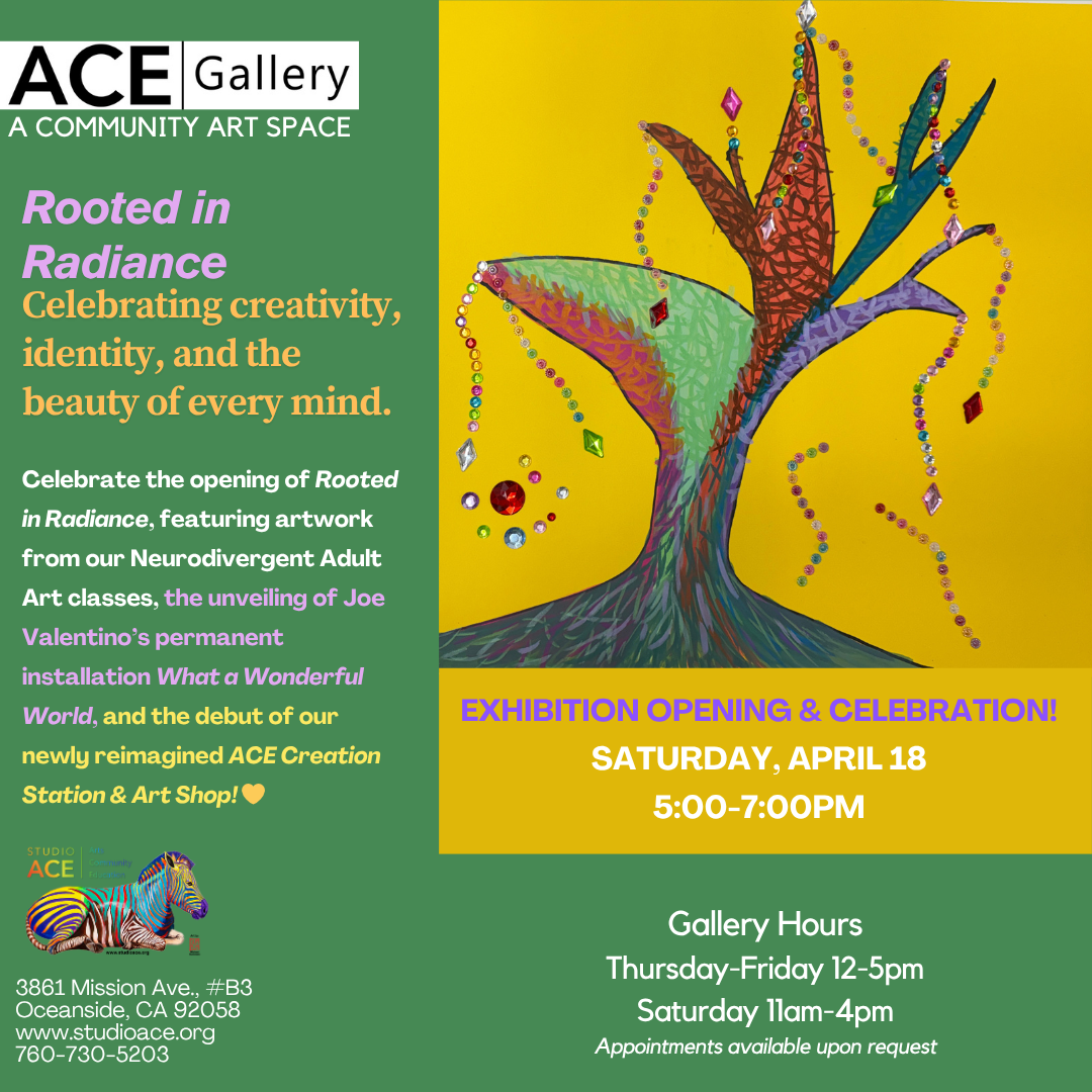 Proceeds from the sale of all artwork exhibited in the ACE Gallery will not only benefit the exhibiting artists, but will also directly help ACE to continue to fulfill its mission to connect, inspire, and enrich lives through Arts, Community, and Education (ACE).