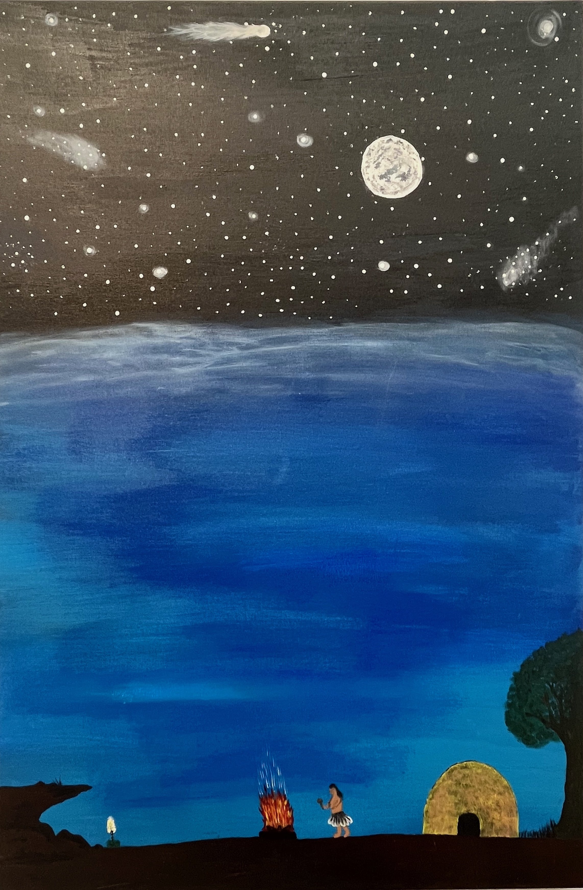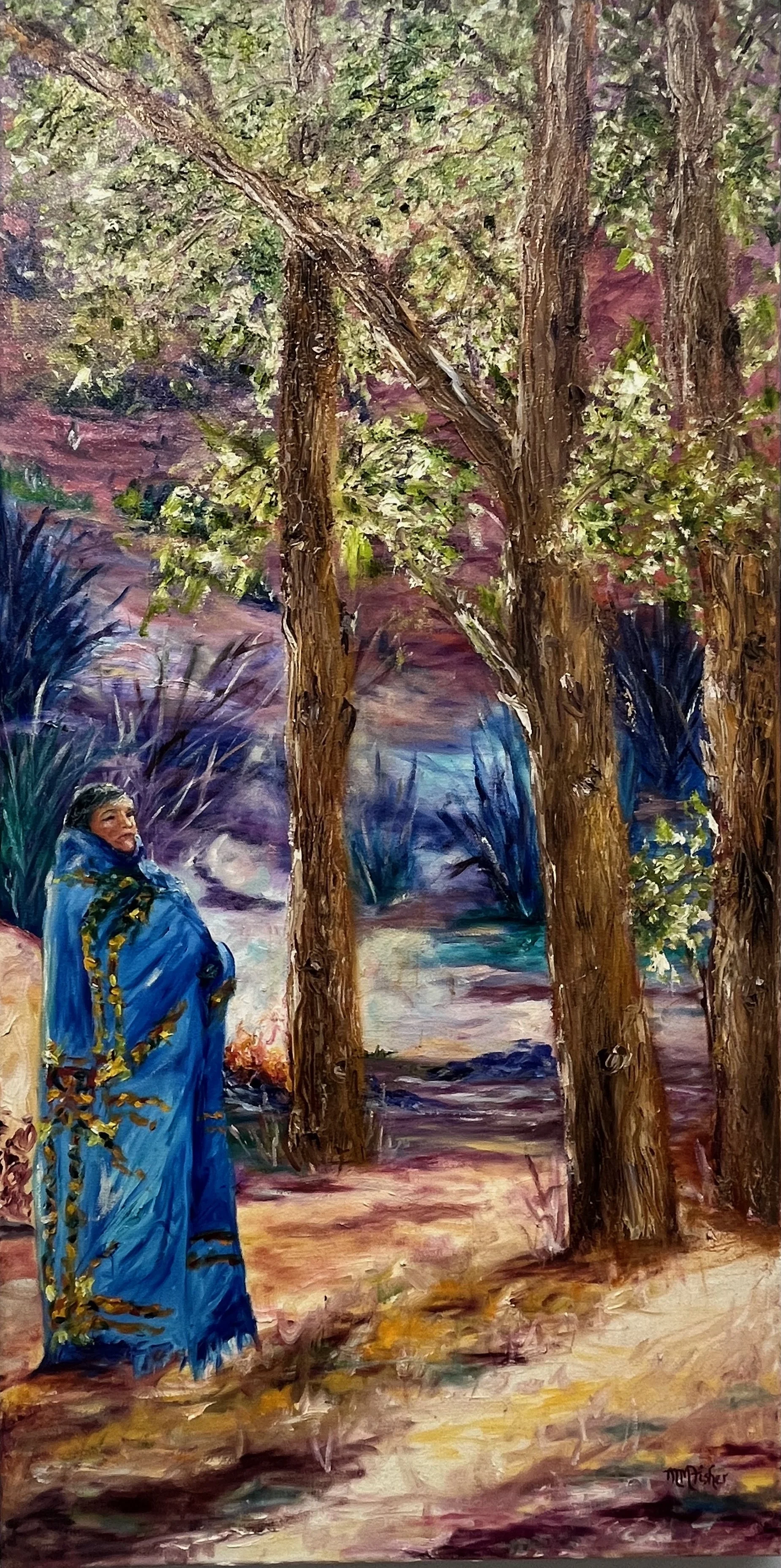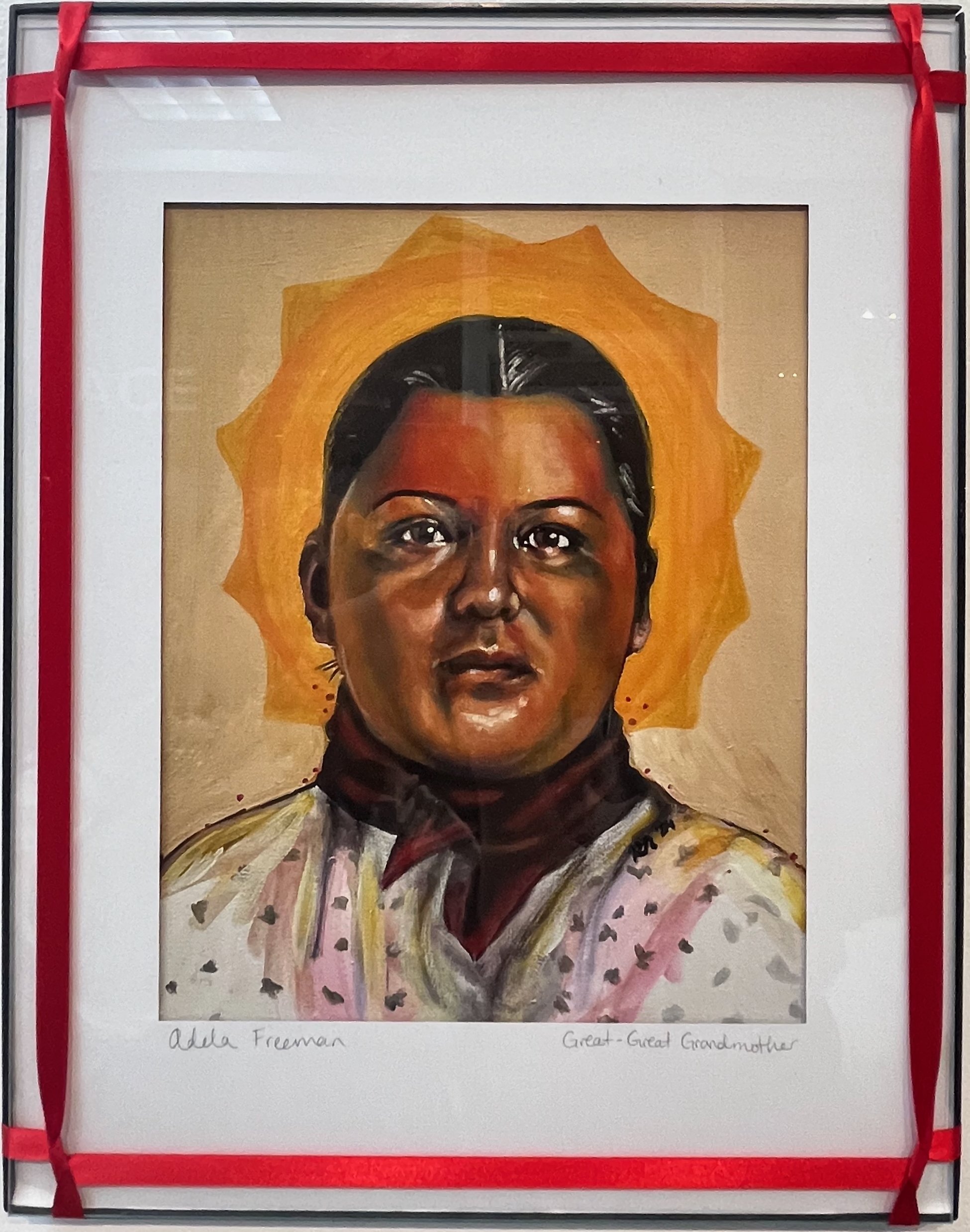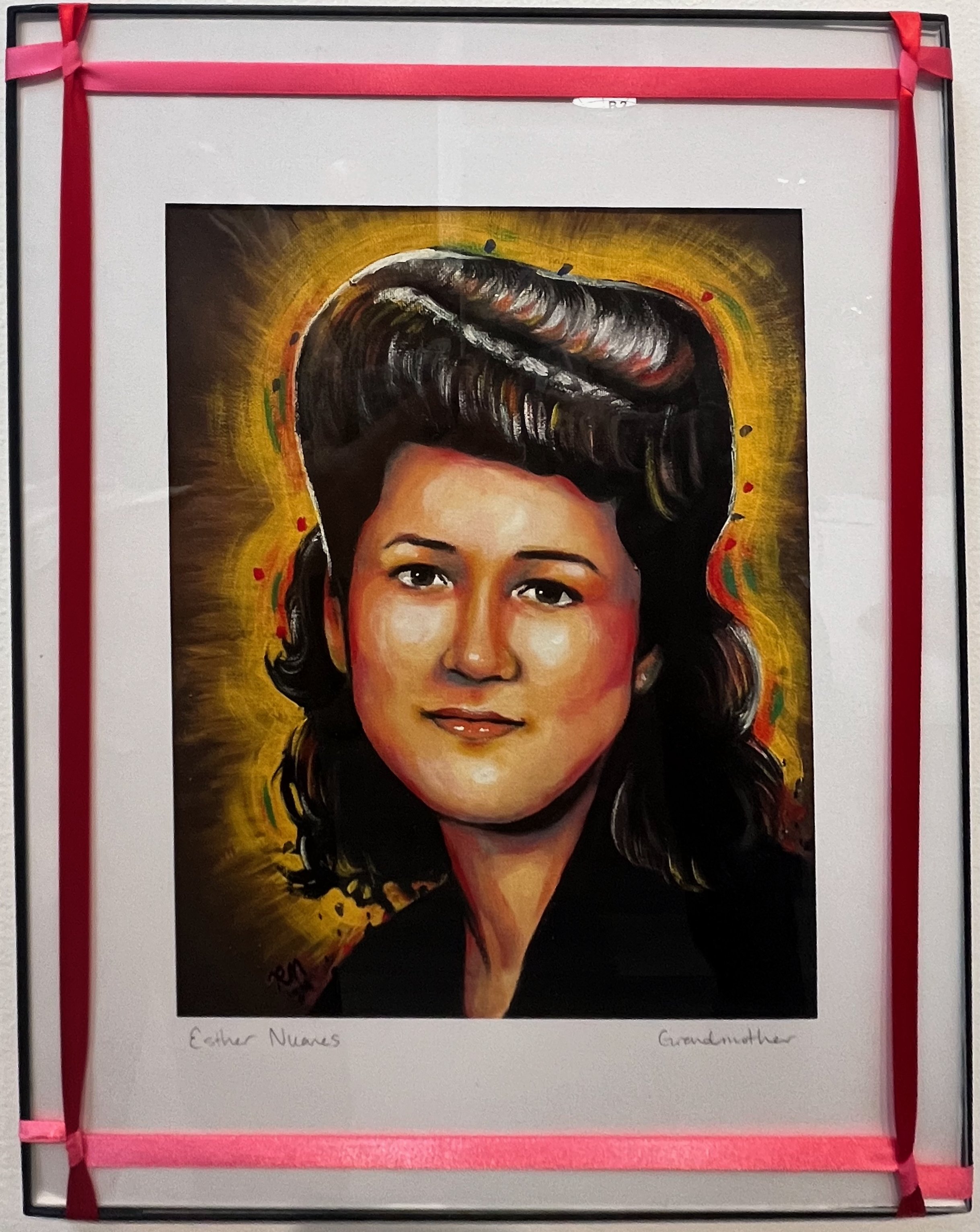In this series, I wanted to paint the images of my grandmothers to honor their legacy- Adela Freeman (Great-Great Grandmother), "Chula" Freeman (Great Grandmother), and Esther Nuanes (Grandmother). I decided to add my self-portrait, "Su", to have all of us presented together. My grandmothers were fierce and strong in spirit, which is one of the many things I admire about them. Adela is buried in the cemetery at Mission San Luis Rey."