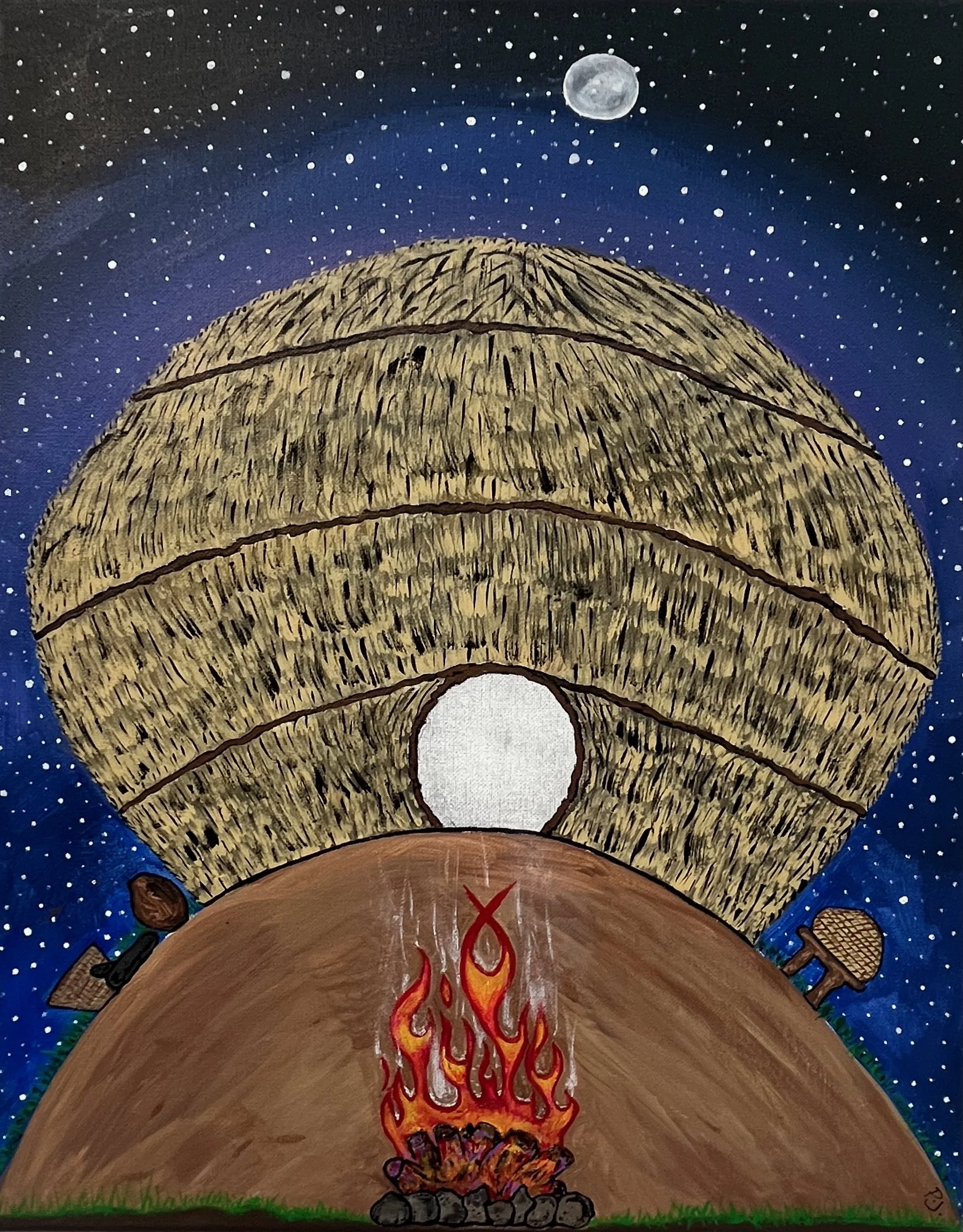 Philip "PJ" Fosselman is a Payómkawichum cultural artist whose work with willow, tule, abalone, and native plant materials reflects the teachings of his Guavish Huscapish Pechanga heritage. He creates kiicha frames, boats, baskets, jewelry, paintings, hand drums, and gourd rattles.