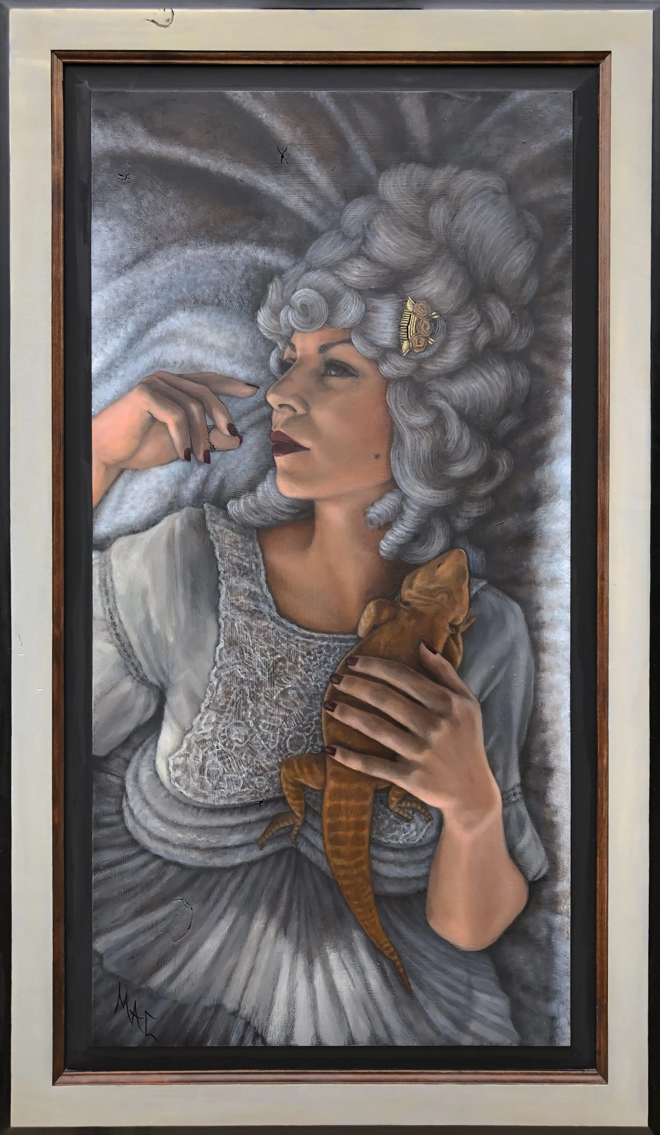 Margaret Chiaro uses figurative painting to invite the viewer to enter a unique world or moment. Spending hundreds of hours on a single piece, painting everything by hand in traditional techniques, she obsessively renders her subjects, caught in moments when they are open and expressive. Through her chosen genre, Magical Realism, she fuses reality with imagination to create a visceral new “world” for the subject to dwell in and the viewer to observe.